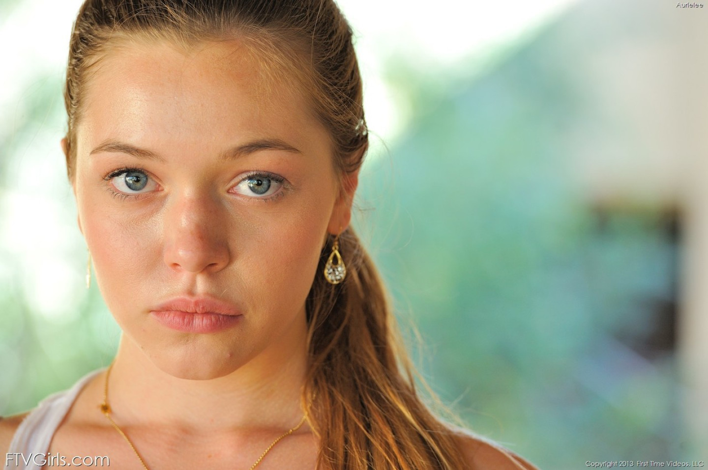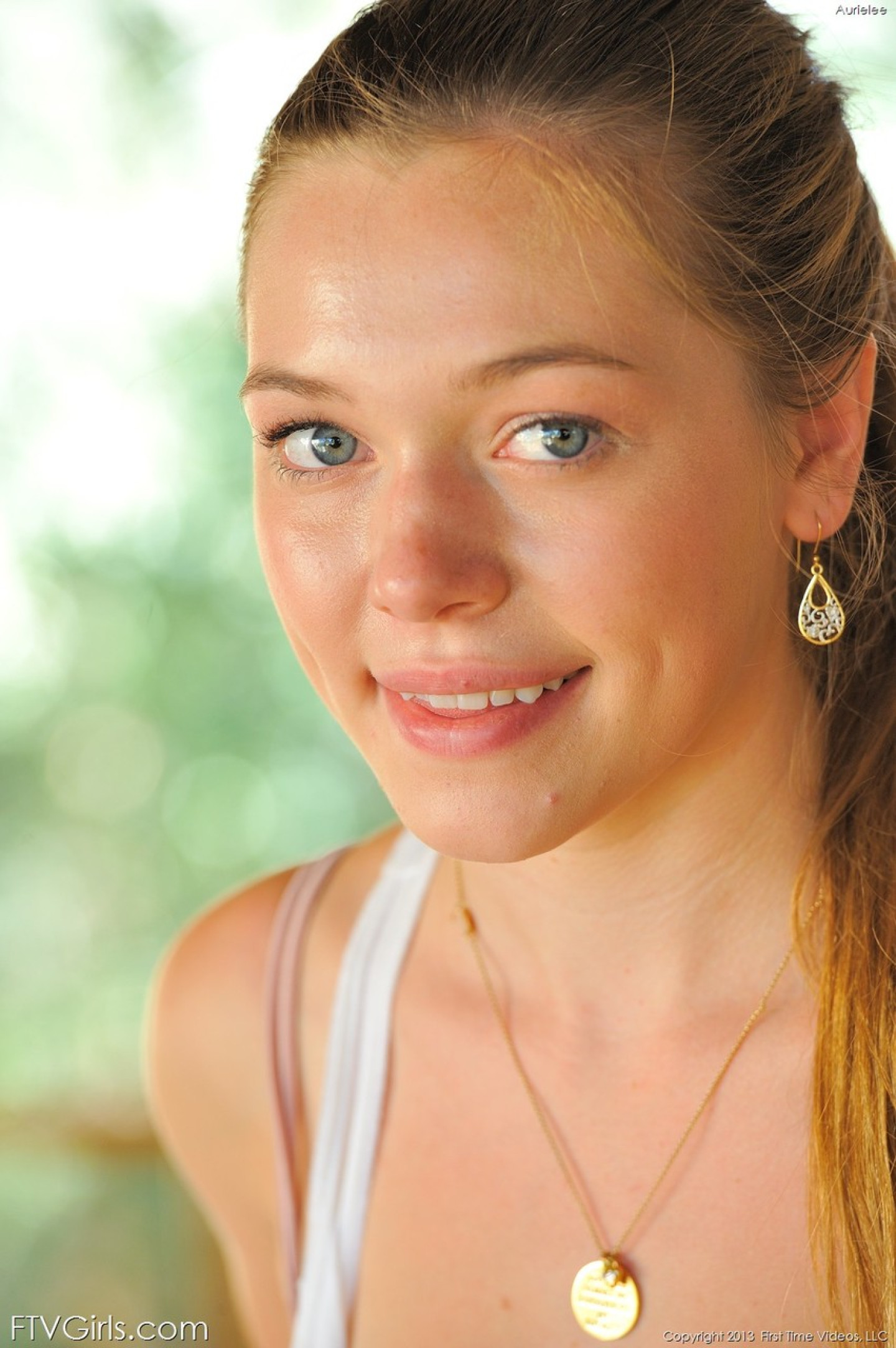 Skinny blue eyed teen Aurielee reveals her twat and sticks a pink toy in it