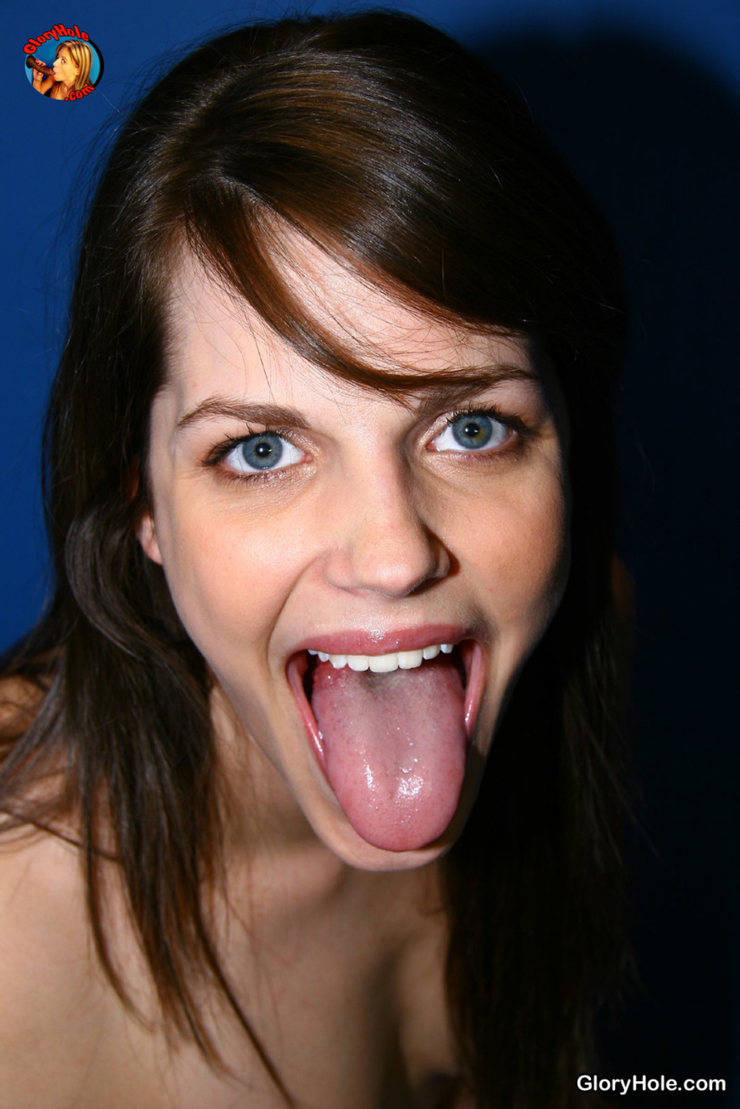 Hard slut Bobbi Starr gets her tongue covered in cum in gloryhole blowy