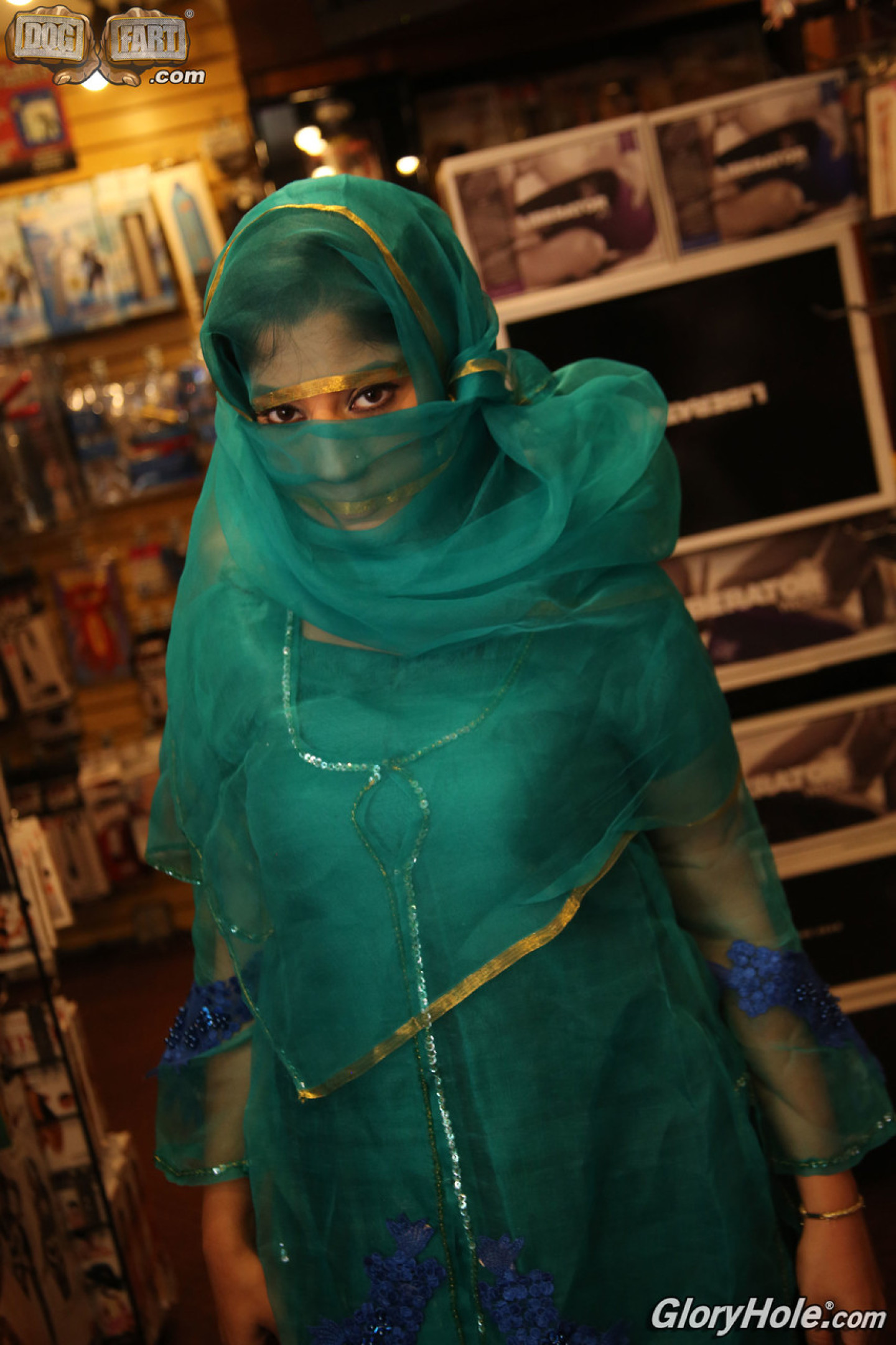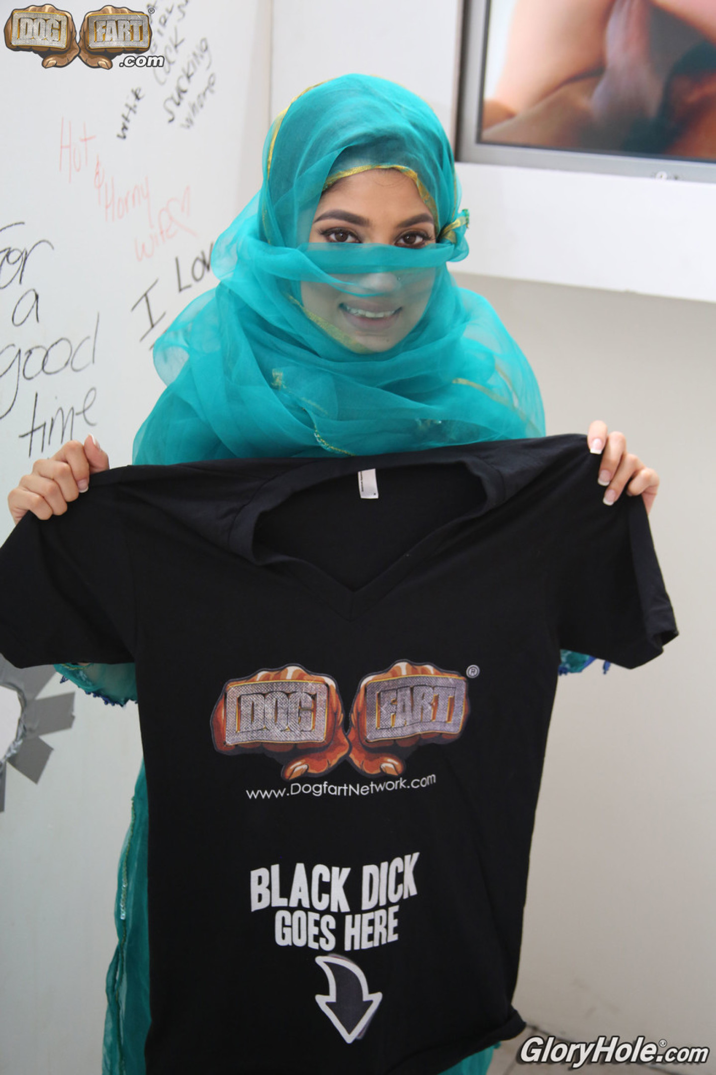 Indian female Nadia Ali sucks off a big black cock thru a glory hole