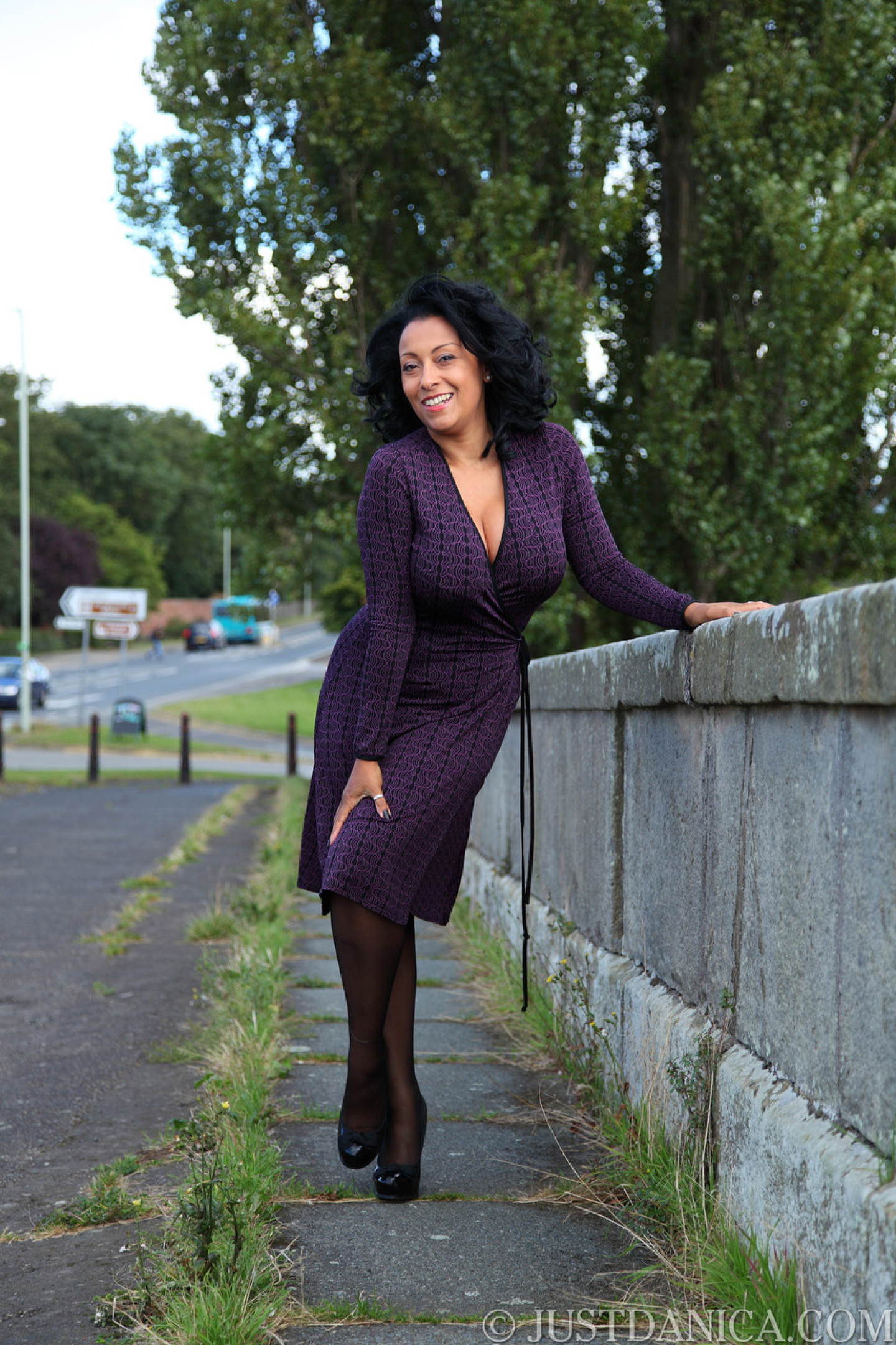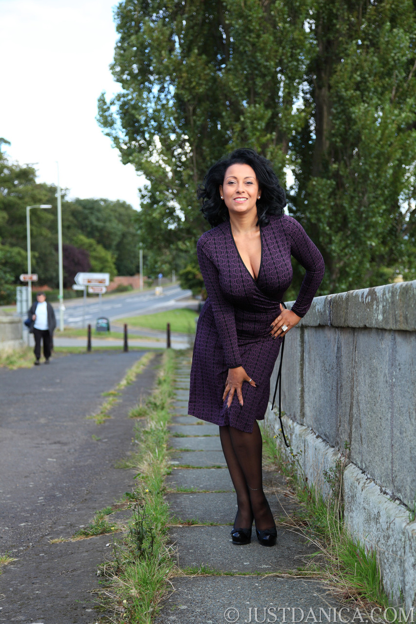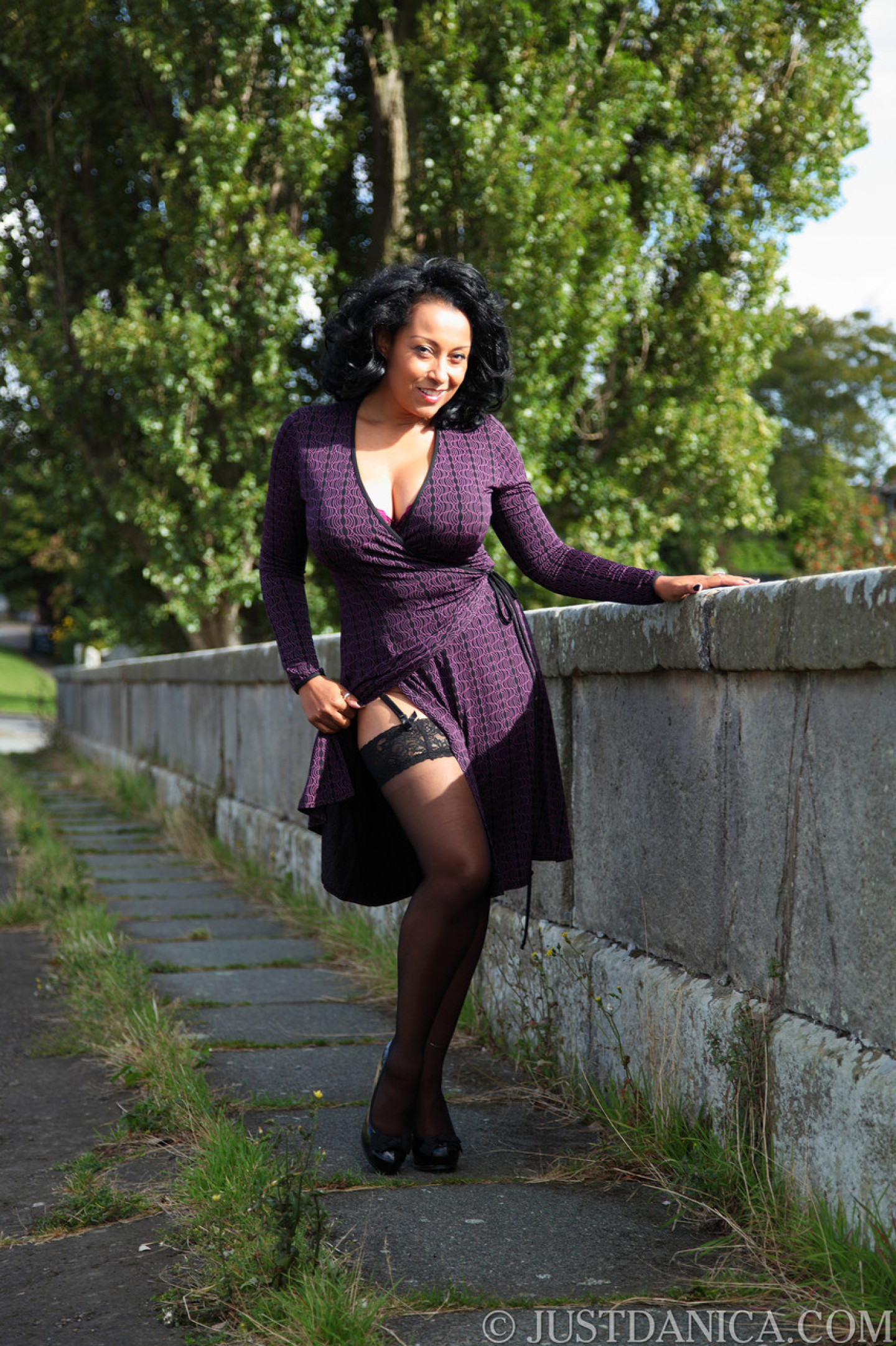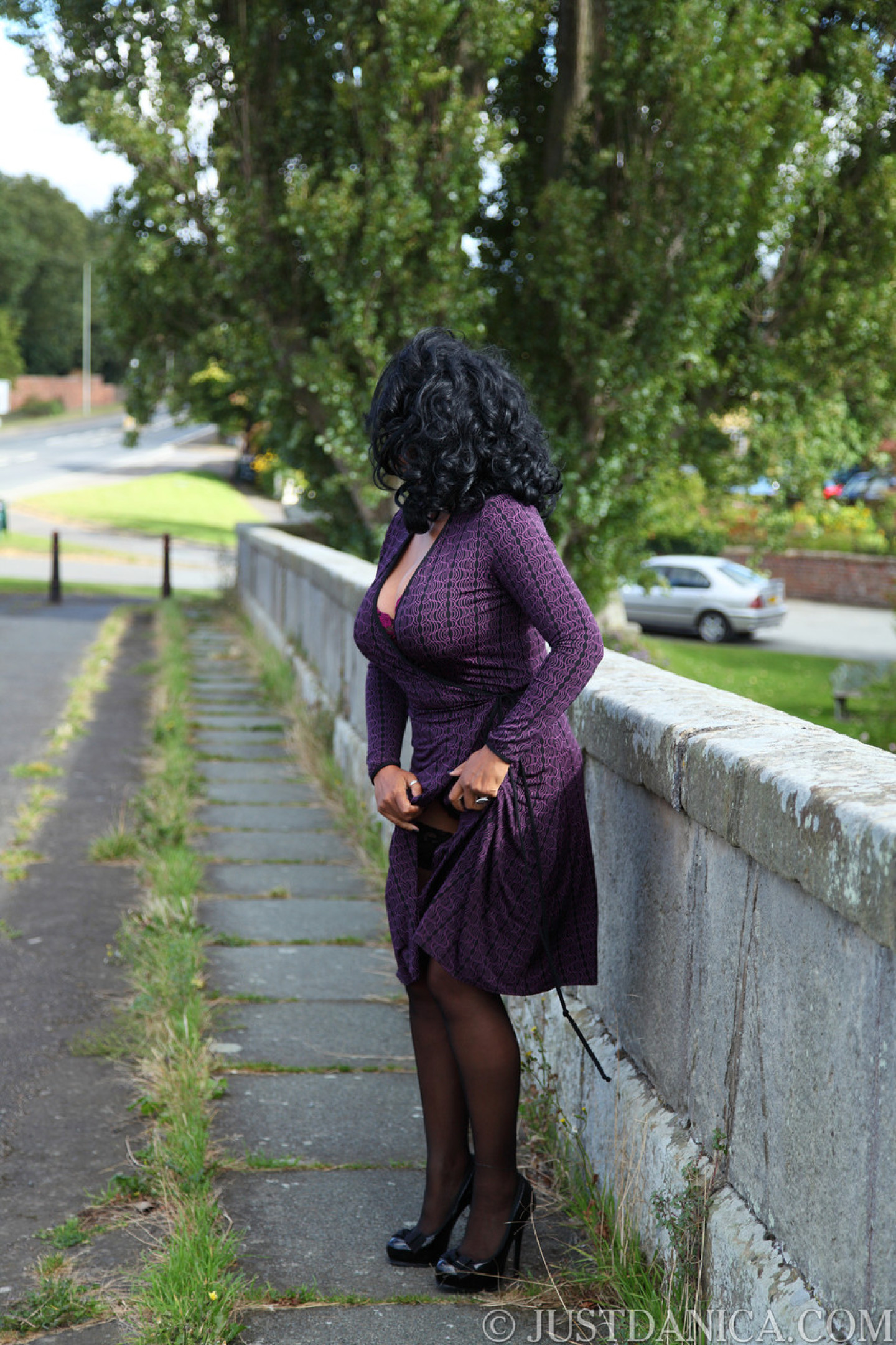 Slutty MILF in stockings Danica Collins exposes her big tits & ass in public